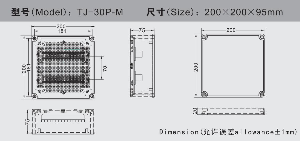浙江天齐电气有限公司(TIBOX)是一家集研发、生产、工程、销售为一体的中外合资企业。产品远销东南亚、欧洲、美洲等国家和地区,遍布世界各地。主要经营:成套电器、金属机柜、挂式机柜、落地式机柜、网络机柜、总线接线盒、塑料机柜、塑料防水防尘接线盒、塑料密封盒等产品。