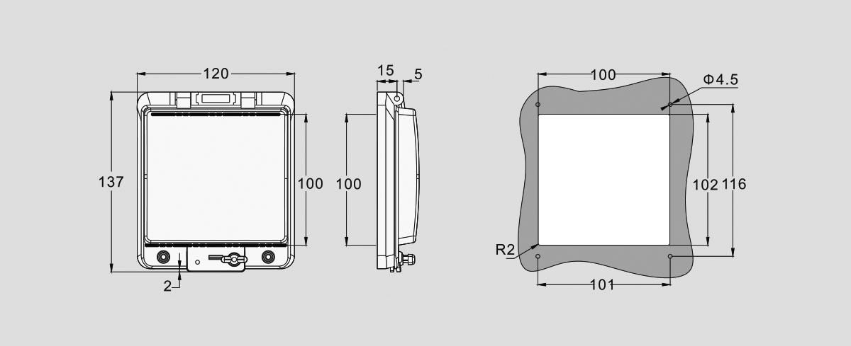 面板为工程pc材料,强度高,不变色,透明材料为PC聚碳酸酯,防紫外线;
