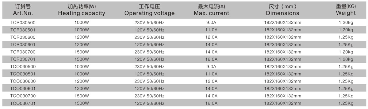 TCR 030/TCO 030系列 结构紧凑性能风扇加热器
