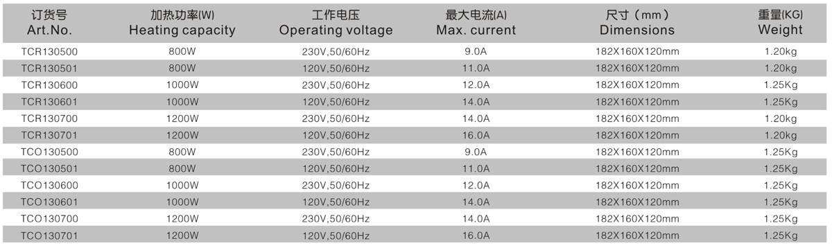 TCR 130/TCO 130系列 结构紧凑性能风扇加热器