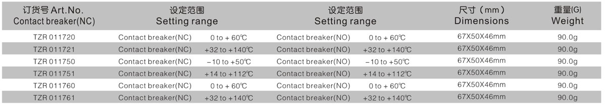 恒温器(常闭):断路器调节加热器